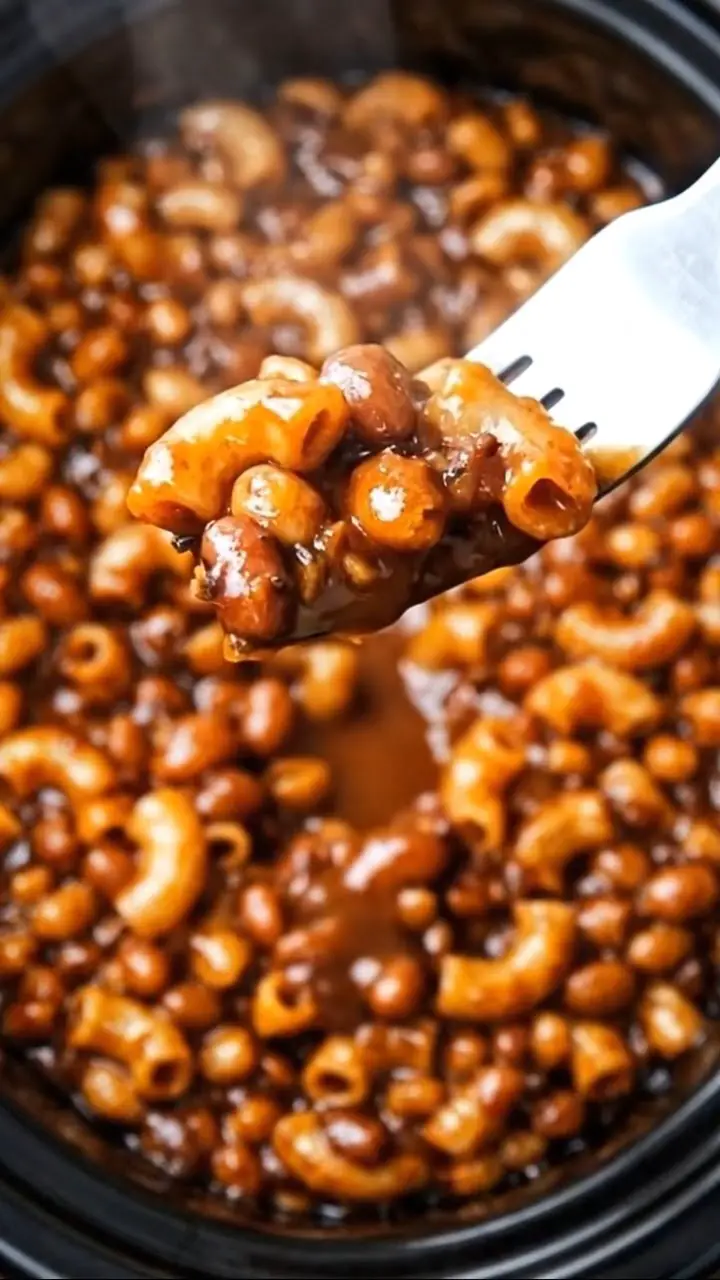 Slow Cooker 3-Ingredient Baked Bean Macaroni