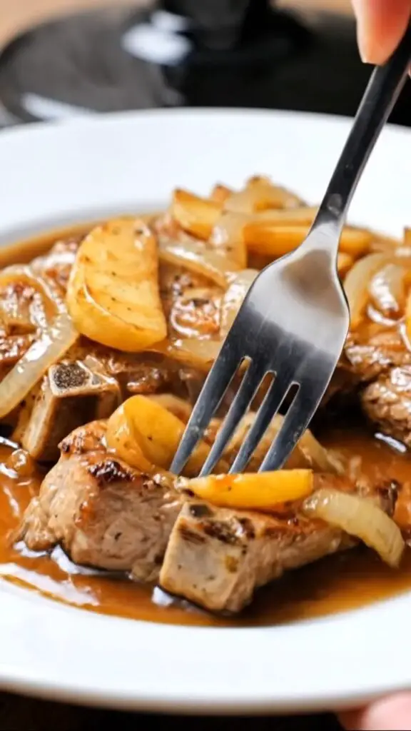 Slow Cooker 4-Ingredient Apple Onion Pork That Melts in Your Mouth