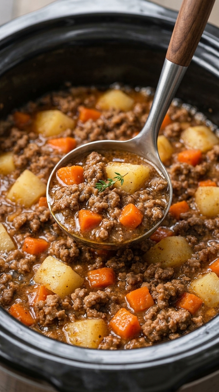 Slow Cooker 4-Ingredient Poor Man’s Stew is the kind of meal that proves simple ingredients can still create something deeply satisfying. With just ground beef, potatoes, carrots, and onion soup mix, you can build a rich, savory stew that tastes like it simmered all day in a farmhouse kitchen.
