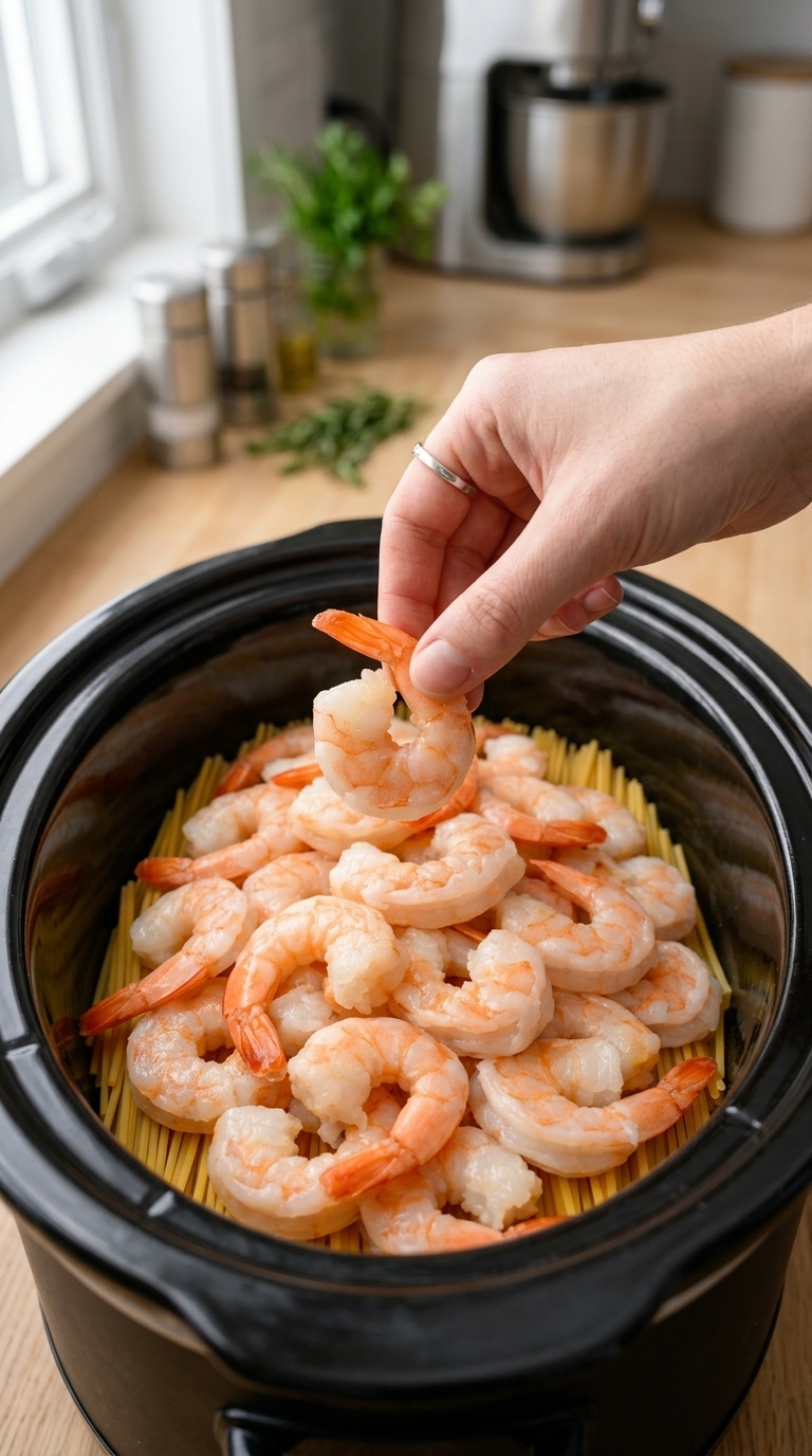One evening after a long day, I needed a quick dinner that still felt comforting. I had shrimp in the freezer and a box of pasta in the pantry, so I decided to try making everything in the slow cooker. I layered the ingredients, set the timer, and hoped for the best. When I came back, the smell of garlic butter filled the kitchen, and the pasta had turned perfectly tender. My family sat down expecting something simple, but after one bite, everyone went quiet, then immediately reached for seconds. Since then, it has become a regular dinner request whenever we want something cozy without the extra work.
