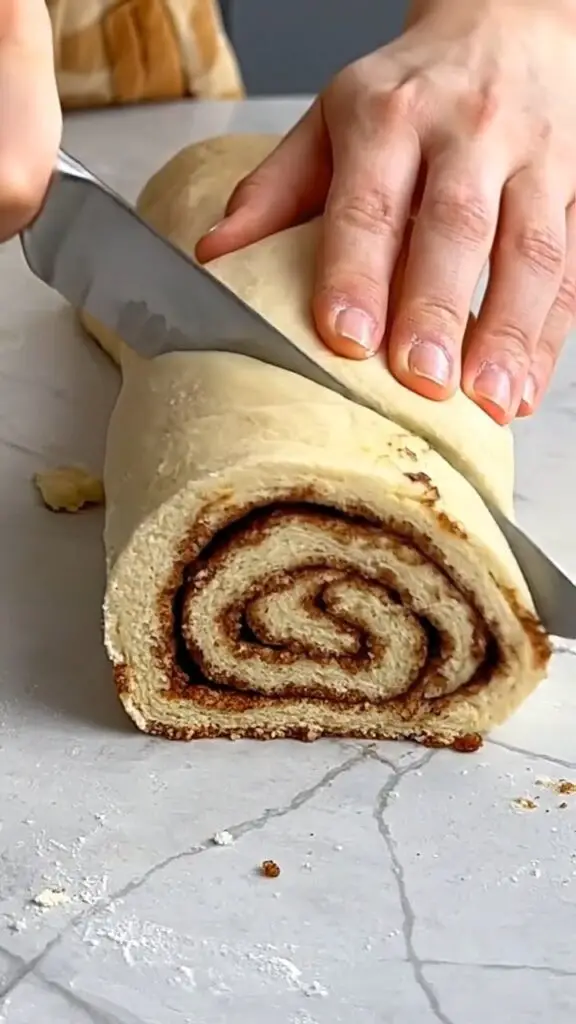 The cinnamon filling blends softened butter, brown sugar, and cinnamon into a rich layer that melts into the dough.
