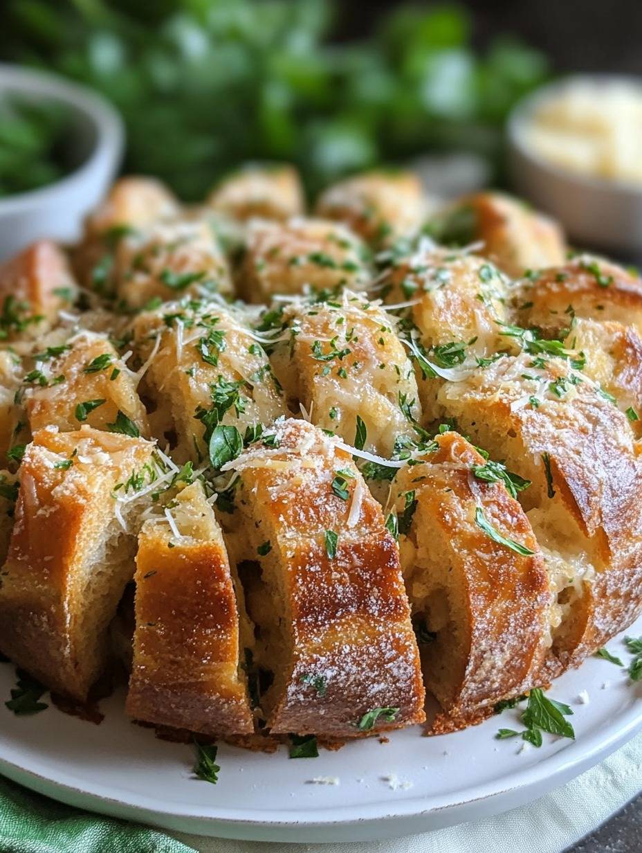 Think garlic bread’s sophisticated cousin. Buttery, herby, and cheesy with just a whisper of sourdough tang. Each bite bursts with flavor—and those crusty bits where the butter pools? Chef’s kiss.