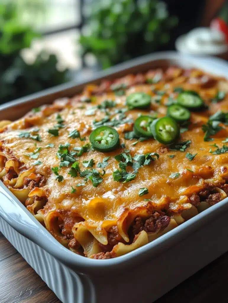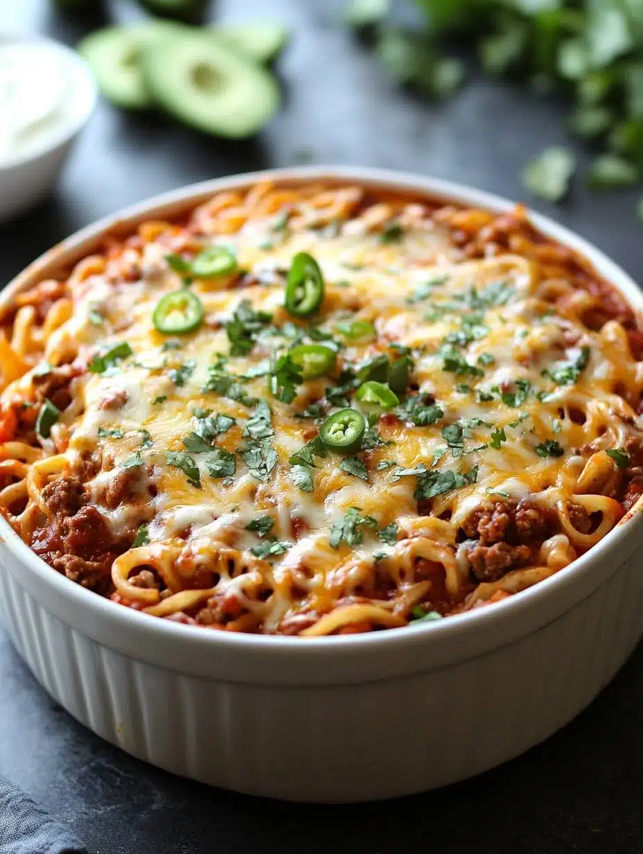 This Spicy Beef Enchilada Noodle Casserole is a crowd-pleaser that brings the rich flavors of enchiladas into a cozy pasta bake. With its cheesy topping, hearty beef filling, and a touch of spice, it’s comfort food with a kick that’s sure to satisfy. Enjoy it for a family dinner, a cozy night in, or any occasion that calls for a warming meal.