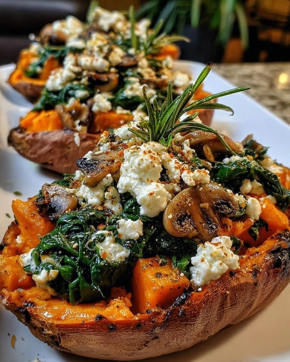 I made these Stuffed Sweet Potatoes with Spinach, Mushroom, Feta & Rosemary on a quiet evening when I wanted something cozy yet healthy. I had a few vegetables in the fridge and some sweet potatoes on hand, so I decided to try something simple. As everything cooked, the aroma of rosemary and garlic filled the kitchen. When I took my first bite, I was amazed by how satisfying it felt. Since then, this dish has become a regular favorite because it is easy, wholesome, and full of flavor.