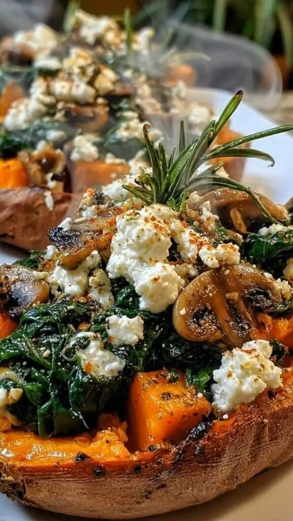 One cool evening, I pulled a few sweet potatoes from the pantry and noticed mushrooms, spinach, and feta waiting in the fridge. The combination instantly felt right. As the rosemary warmed in the skillet and the sweet potatoes roasted until tender, the kitchen filled with the kind of aroma that makes everyone wander in asking what’s for dinner. Since then, this dish has become one of those dependable meals I make whenever I want something wholesome, comforting, and just a little special without much effort.