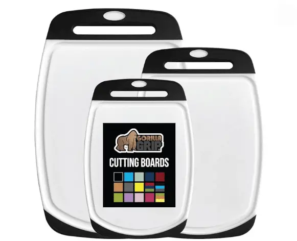 Make food prep easier than ever with this ultra-durable cutting board. Designed with a slip-resistant handle and rubber border, it stays securely in place to minimize movement on your countertop.
