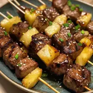 Whether you’re planning a summer BBQ, looking to impress at your next dinner party, or simply craving something bold and satisfying, these Teriyaki Pineapple Steak Skewers are the answer. With minimal prep and maximum flavor, they’re a delicious way to bring a tropical twist to your grill. Sweet pineapple, savory steak, and vibrant veggies—all kissed by fire and glazed in teriyaki goodness—what more could you ask for?