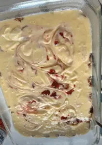 - Prepare red velvet cake batter and bake according to recipe directions.