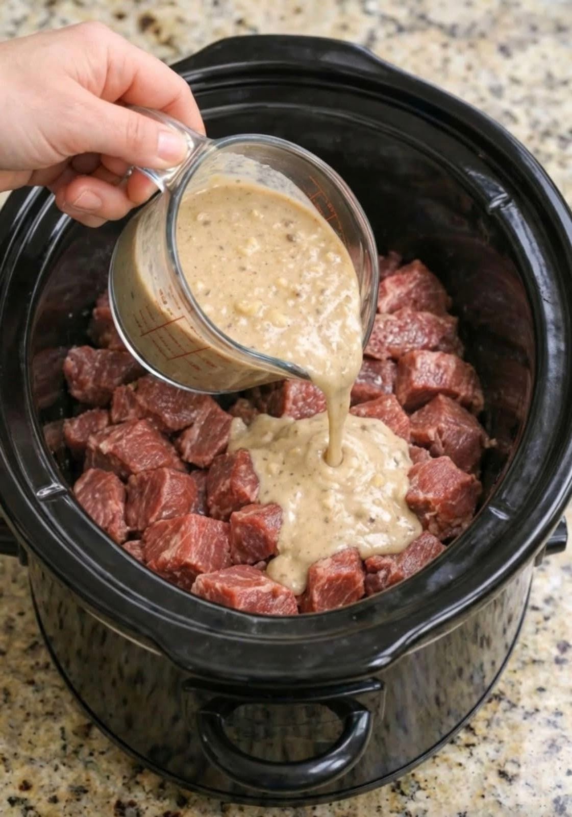 Cooking Whisked Creamy Slow Cooker Beef Chunks