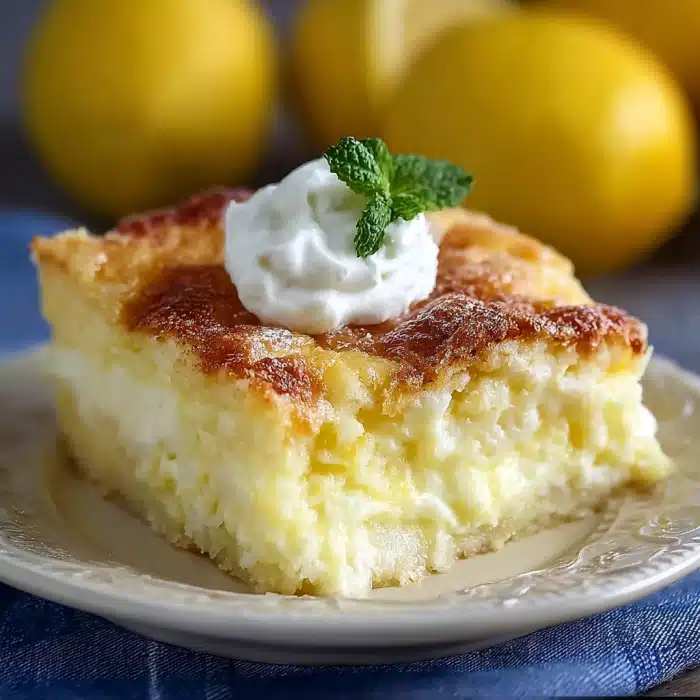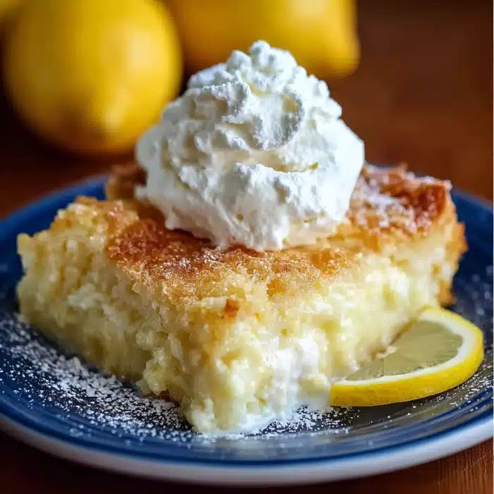 Let cool 15–20 minutes (this helps the pudding-like interior set). Serve warm—optionally topped with whipped cream, ice cream, or a sprinkle of lemon zest.